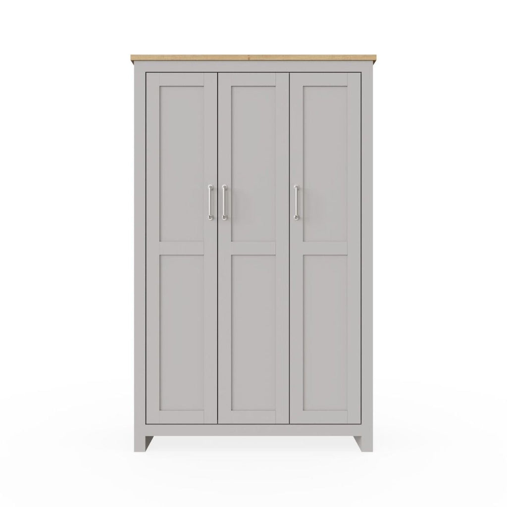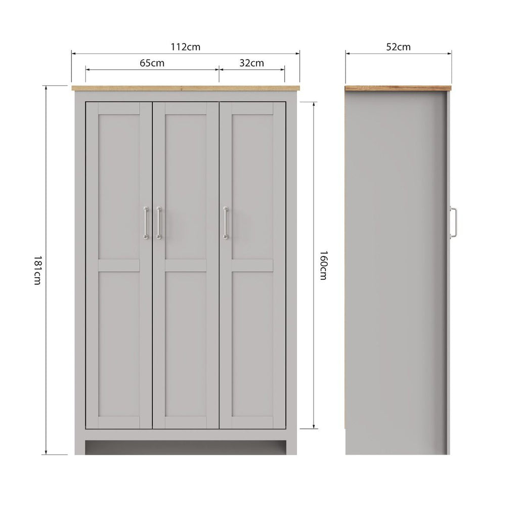 Full of presence, the Lisbon range in Light Grey and cascading Oak tops fills any room with warmth and comfort. The Lisbon wardrobe is completed with a hanging rail and 3 internal shelves for an effective storage mix.