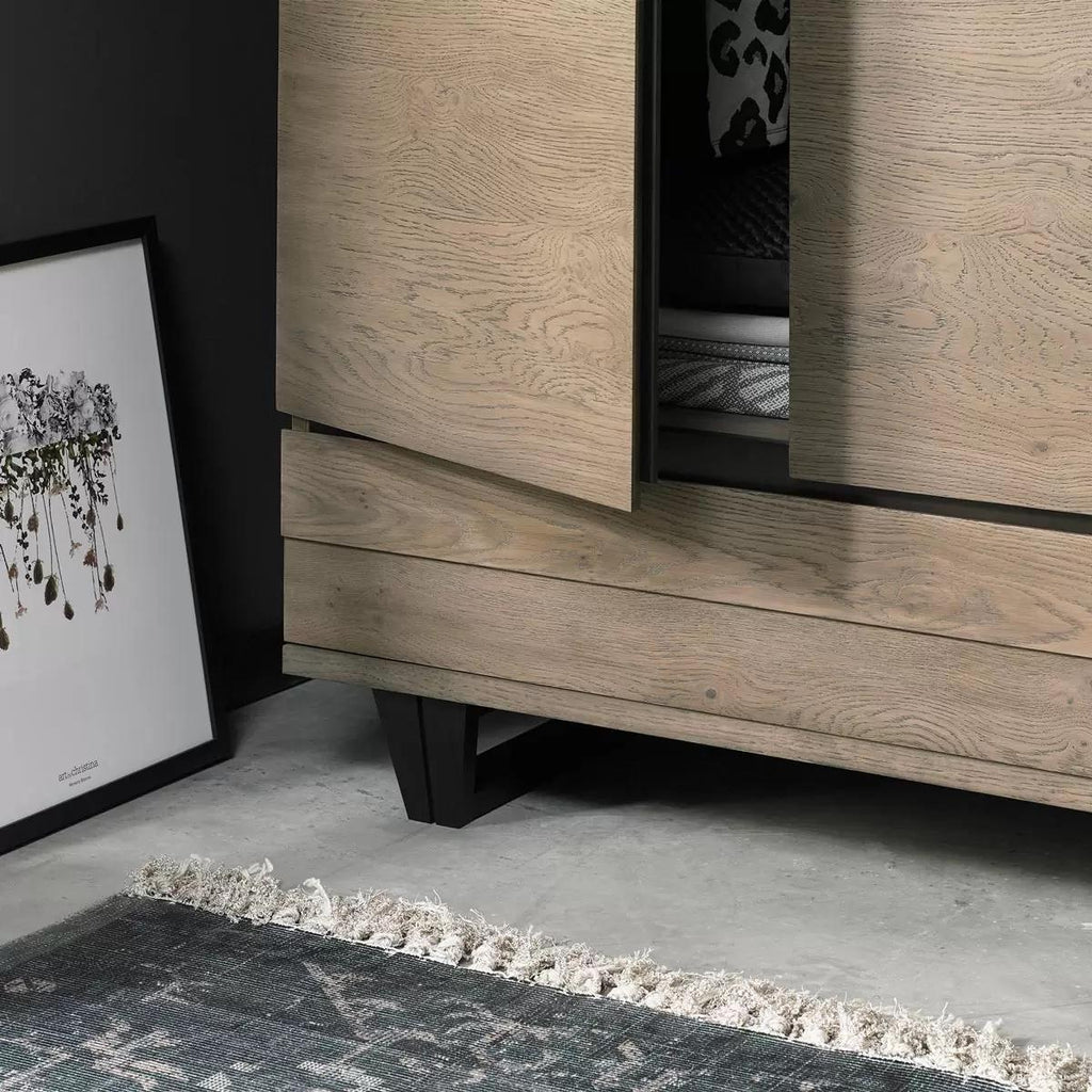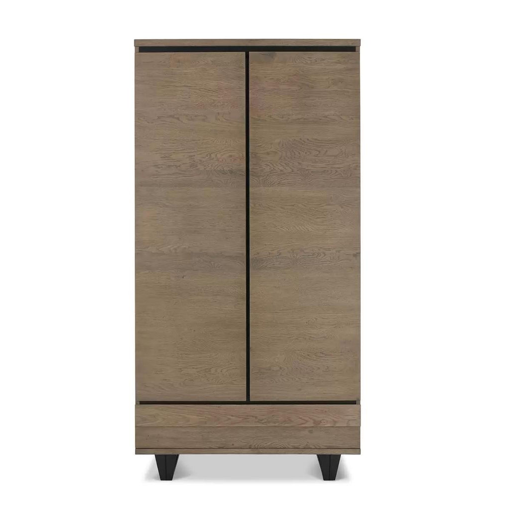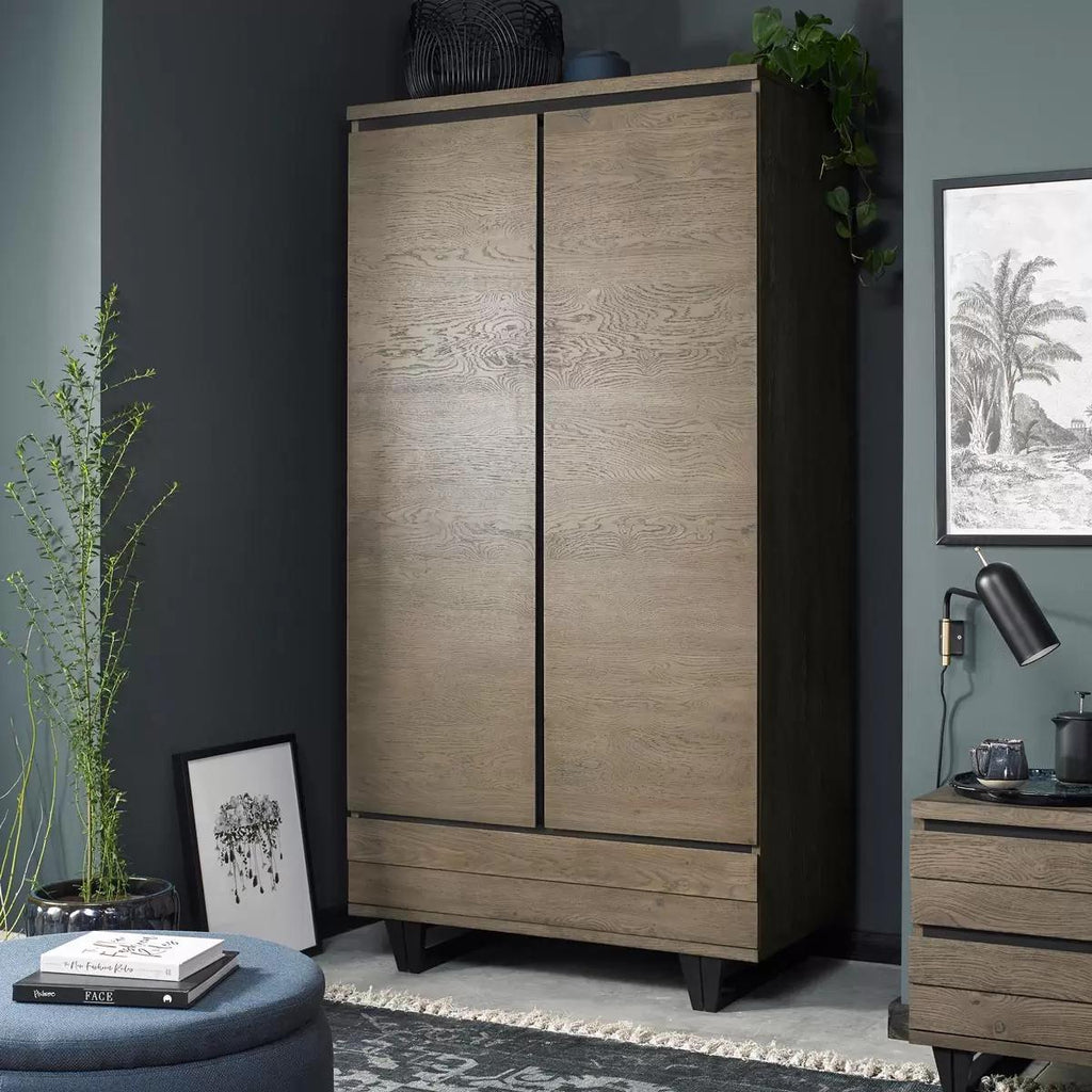 The Tivoli Weathered Oak Double Wardrobe from Bentley Designs is part of a contemporary and on-trend bedroom range, incorporating a bold and striking mix of wire brushed rustic weathered oak with ebonised accent detailed legs, making it a compelling choice for any bedroom.