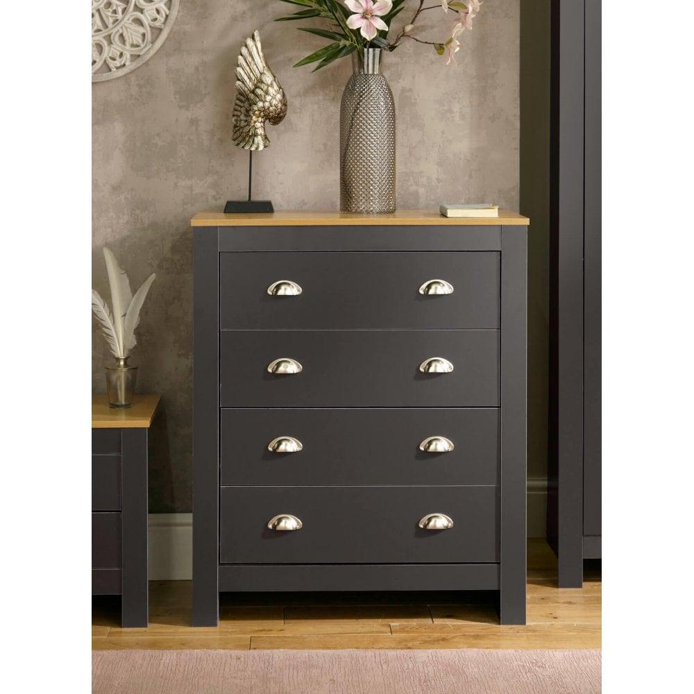 High quality and stylish, this chest of drawers is a welcome addition to any bedroom space. With four generously sized drawers and a large surface top area, you can keep your clothes organised and hidden away as well as any ornaments displayed above. Give the surface top a simple wipe over to keep pristine.