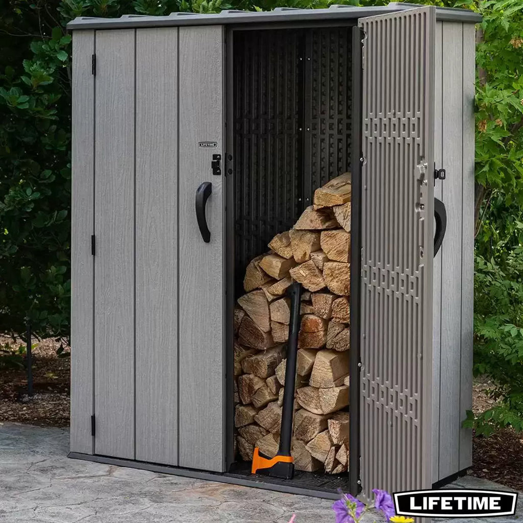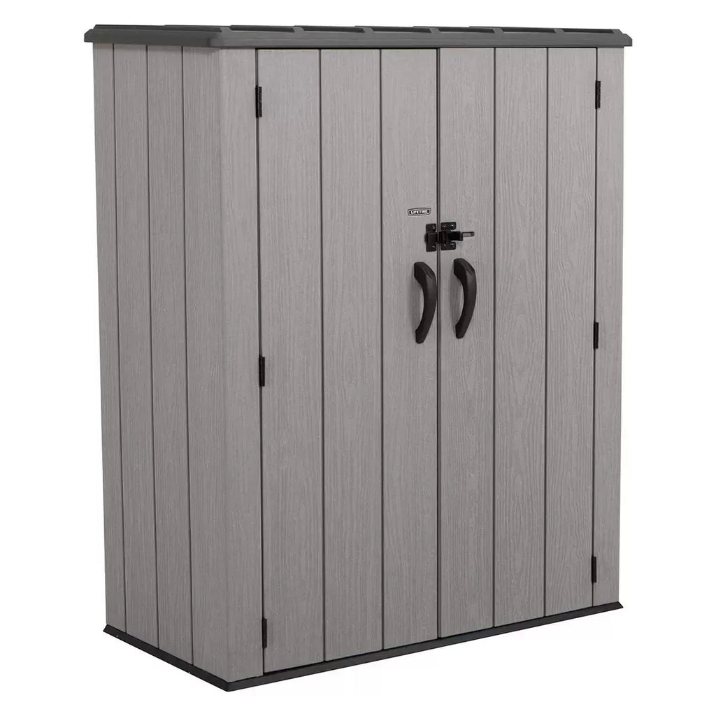 Organise your outdoor space with this spacious and versatile Lifetime 4ft 6" x 2ft 4" (1.4 x 0.7m) Vertical 1,510 Litre (399 Gallon) Storage Shed. The shed is crafted from powder coated steel and high density polyethylene (HDPE) and the 1.81m³ interior capacity easily accommodates larger garden items, such as, garden furniture, tools and equipment.