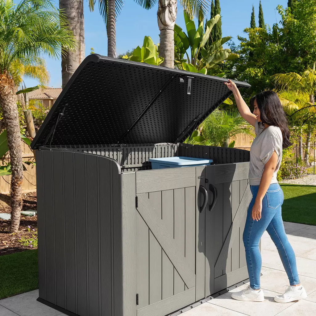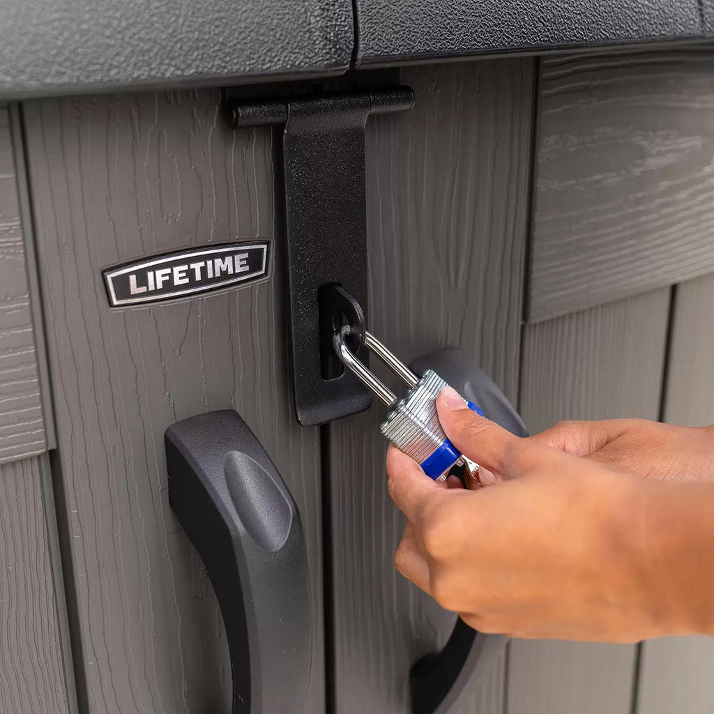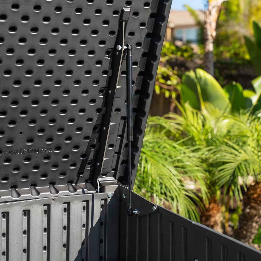 Organise your outdoor space with this spacious and versatile Lifetime 6ft 2" x 3ft 4" (2.3 x 1m) Horizontal 2,190 Litre Storage Shed. Its impressive interior capacity easily accommodates larger garden items such as furniture, tools and equipment, whilst it is also large enough to store a family set of bicycles (two adult, two children) or two large wheelie bins.