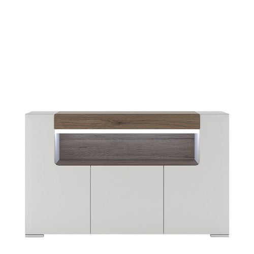 Luscanny 3 Door Sideboard with open shelving with Plexi Lightining in High Gloss White For Living Room