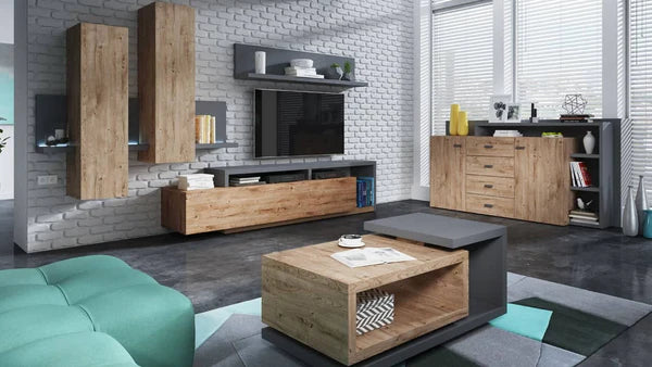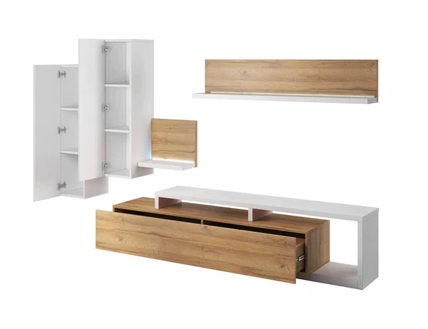 - Includes TV Cabinet, Wall Hung Cabinet & Wall Shelf