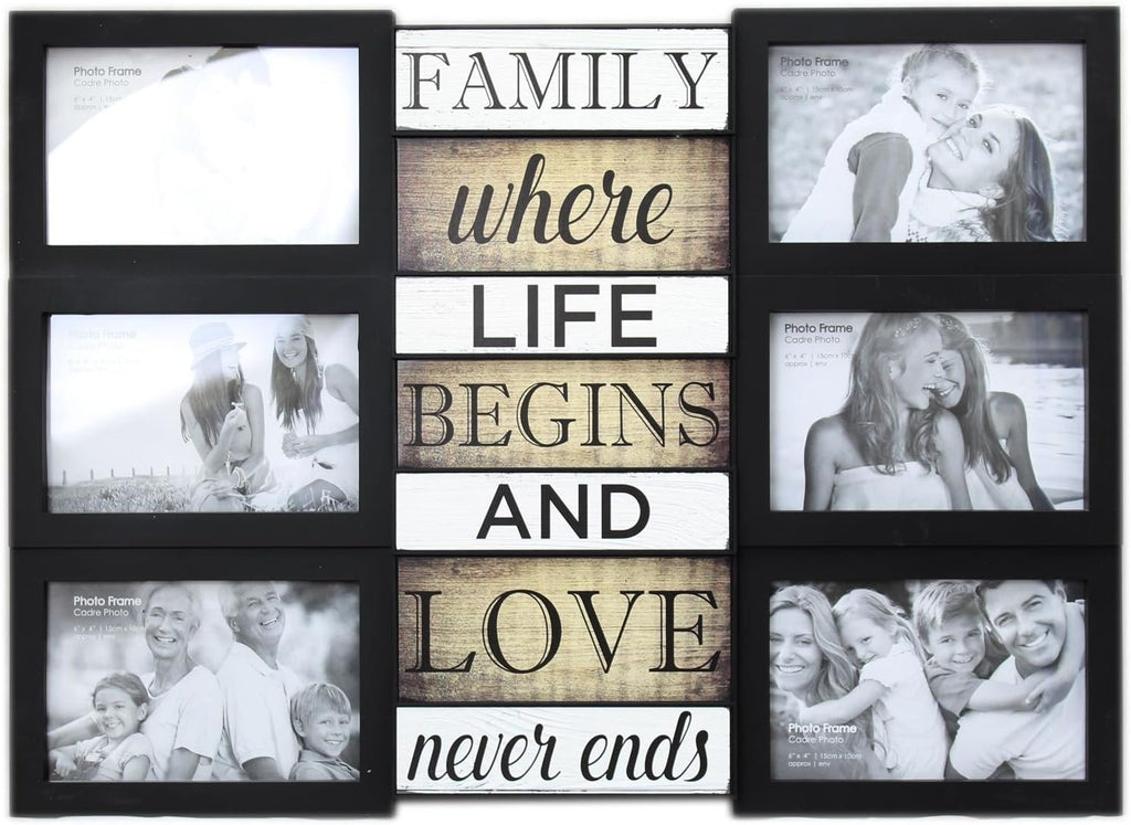 The rustic design of the frame also means it brings a homely feel with it into any room. Black plastic multi photo frame that holds six 15x10cm landscape photos.