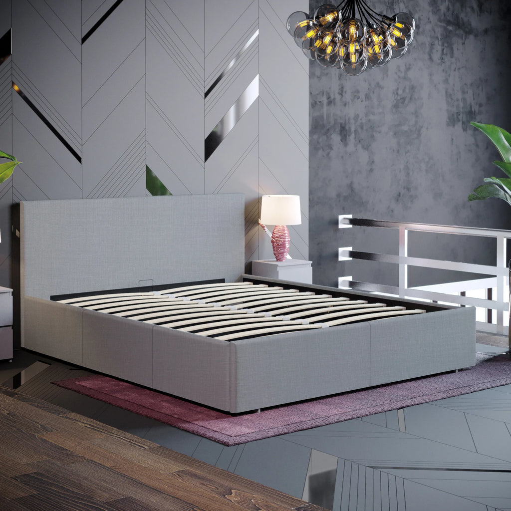 Muvazzi King Size Ottoman Faux Leather Bed in Light Grey With Large Underbed Storage & Headboard