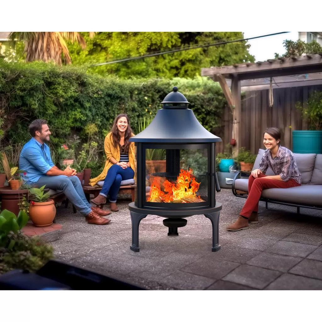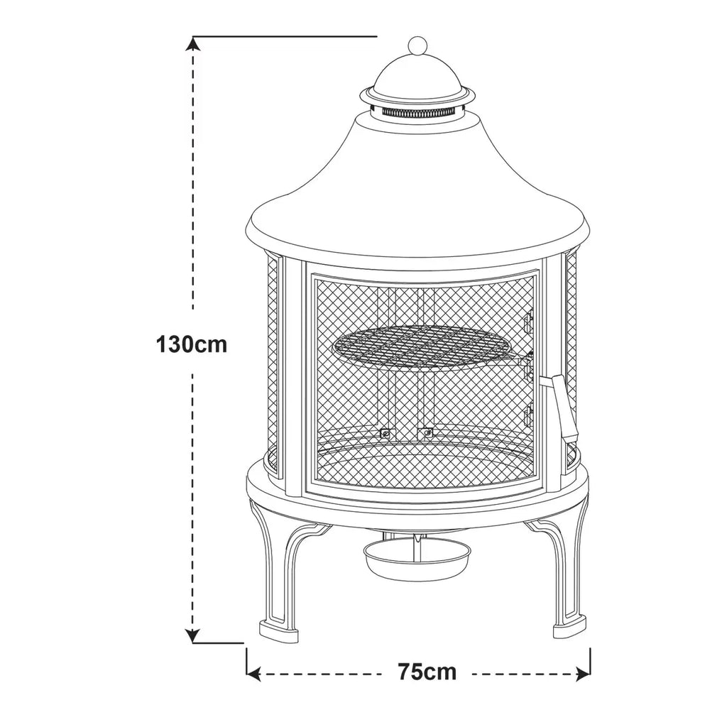 With its classic design, this fire pit doubles as a BBQ and an outdoor heater. All your safety needs are at the heart of this design, with the main body constructed from solid steel with a high heat resistant paint and spark guard mesh exterior. Ideal for cooking, with an adjustable 3 level grill rack and a hinged door for easy log access makes it easy to use. Stylish and safe, it's an all around stunner of a fire pit.
