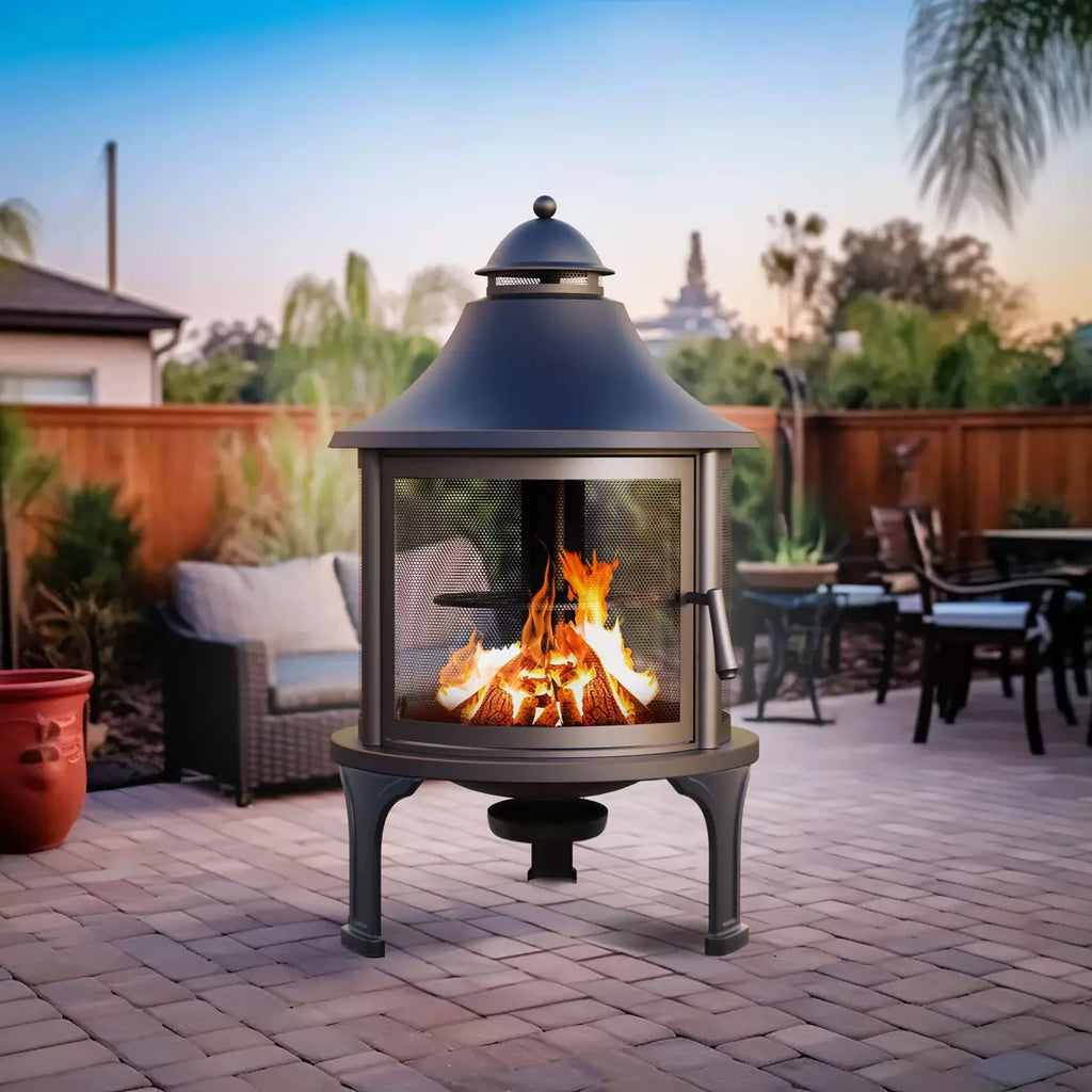 Northwest Sourcing Elevated Round Wood Burning Fire Pit with Swing Out Grill