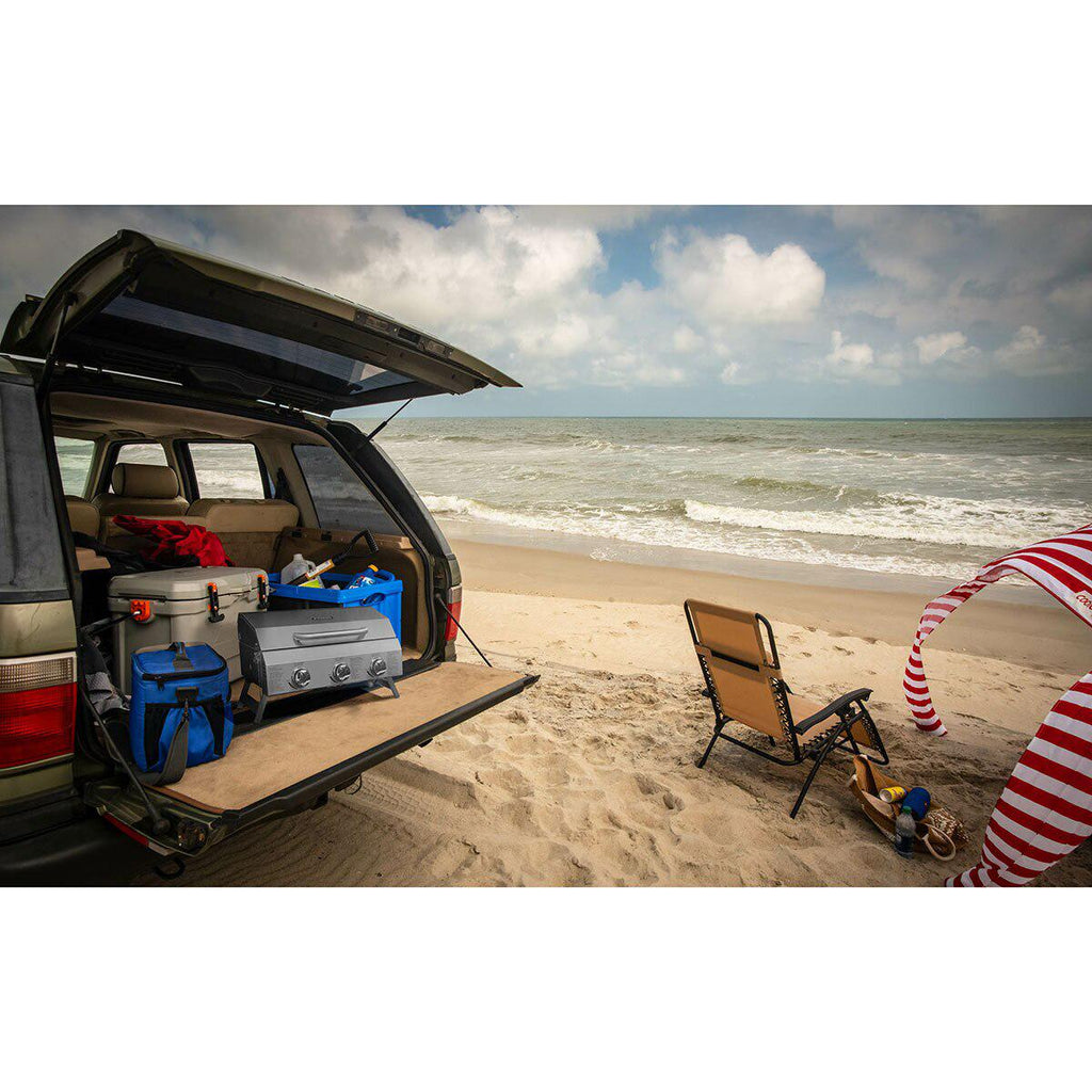 The NXR Stainless Steel 3 Burner Table Top Gas Barbecue is perfect for camping, road trips, and parties. Open the lid to reveal a stainless-steel cooking grid with 312 sq. in. (2,012 cm²) of total cooking surface. There will be no limit to what you can cook on this grill with a total of 24,000 BTU of intense heat.