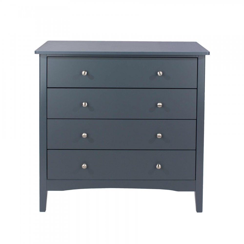 Part of the Salerno Collection, this Salerno 4-Drawer Chest of Drawers is effortlessly cool. It has a soft Blue colour, polished chrome handles, smart style details and metal drawer runners to keep down the noise. What's not to love It is a great space to store your folded clothes whether they're tops and t-shirts, jumpers and jeggings, shorts and sweatshirts, underwear or nightwear. Or store your spare bedding sets instead. Any less quality than this Salerno is a no-no. So we insist on quality of the highest standards from first to last. It's finished with a protective soft Blue paint and has smart features: tapered legs, an arched under plinth, chrome handles and metal runners so the even when full, the drawers are quiet and smooth so nothing disturbs your mood or your partners 40 winks. Why do others charge you more to store At the Big Furniture Warehouse we charge you less as we believe in exceptional value for money.